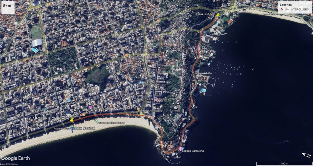 Trajeto de 5km de caminhada e corrida